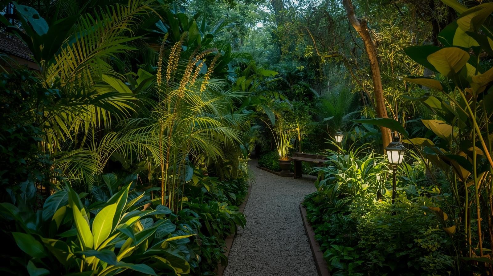 Decoração Verde com Caminhos Iluminados